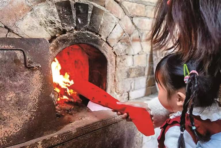 在南風(fēng)古灶景區(qū),游客參與“添柴加薪”活動。/景區(qū)供圖