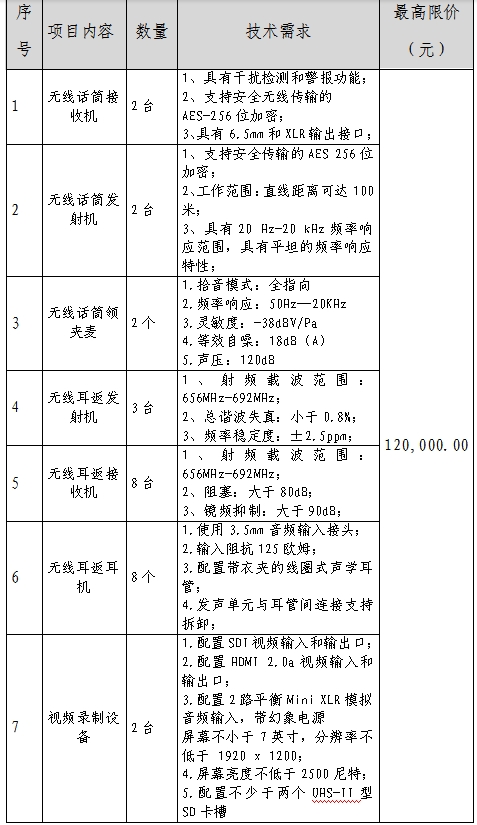 項目名稱:演播室通聯(lián)耳返、無線麥、硬盤錄像機采購項目