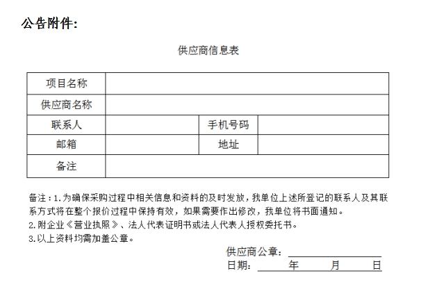 符合資格的供應(yīng)商應(yīng)當(dāng)在2023年10月19日至2023年10月31日(上午09:00至11:30,下午14:30至17:30,北京時(shí)間,法定節(jié)假日除外),將填報(bào)后的公告附件內(nèi)容發(fā)送電子郵件并通知采購(gòu)人,資料需采用WORD和PDF格式制作的電子版各壹份(其中PDF格式文件必須為簽字蓋章后的彩色掃描件)發(fā)至采購(gòu)人郵箱:diaochong@fstv.com.cn,郵件名稱命名為:項(xiàng)目名稱+供應(yīng)商名稱。供應(yīng)商所填報(bào)的聯(lián)系方式必須確保始終有效及聯(lián)系暢通,所填報(bào)的電子郵箱必須確保每天工作時(shí)間內(nèi)至少查看1次。