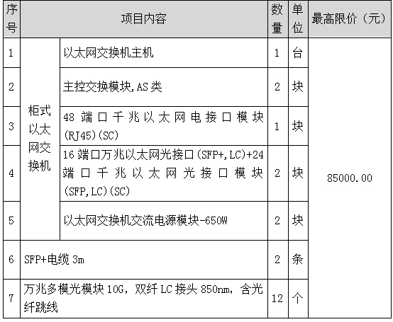 1、標的名稱:6號樓辦公網匯聚交換機(備機)更換項目
