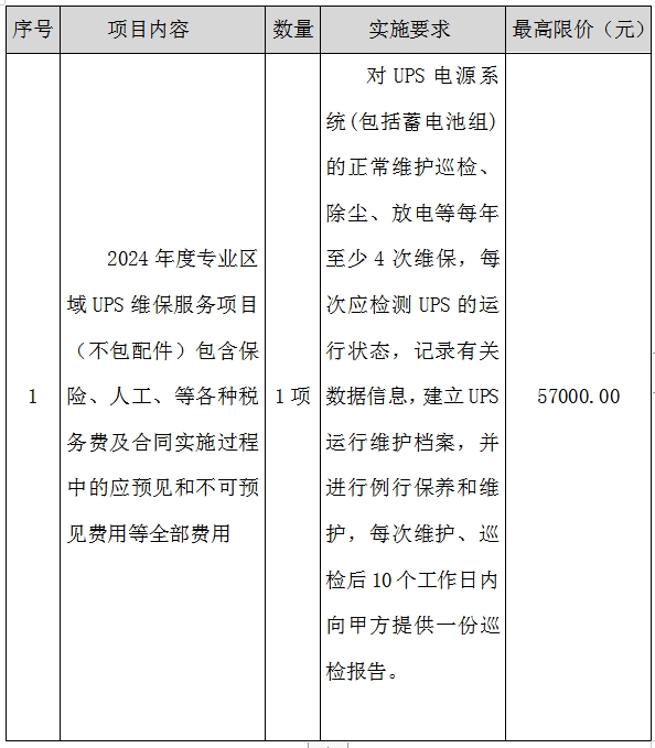 項目名稱:2024年度專業(yè)區(qū)域UPS維保服務項目(不包配件)第二次