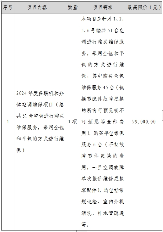 2024年度多聯(lián)機和分體空調(diào)維保項目采購公告