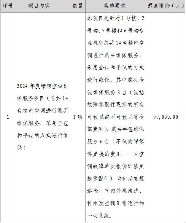 2024年度精密空調(diào)維保服務(wù)項(xiàng)目采購(gòu)公告