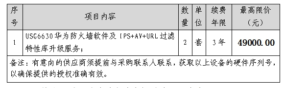 2024年華為防火墻軟件升級服務(wù)采購項(xiàng)目采購公告