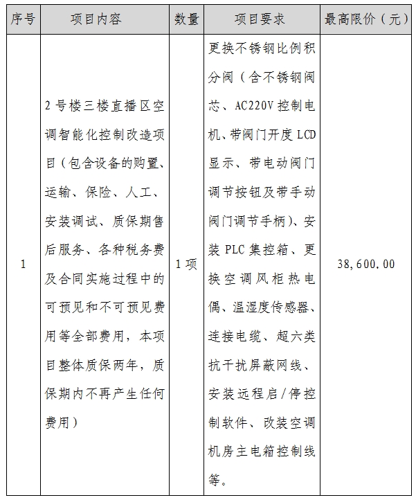 2號樓三樓直播區(qū)空調(diào)智能化控制改造項目采購公告