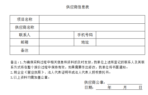 符合資格的供應(yīng)商應(yīng)當(dāng)在2024年10月22日至2024年10月28日(上午09:00至11:30,下午14:30至17:30,北京時(shí)間,法定節(jié)假日除外),將填報(bào)后的公告附件內(nèi)容發(fā)送電子郵件并通知采購(gòu)人,資料需采用WORD和PDF格式制作的電子版各壹份(其中PDF格式文件必須為簽字蓋章后的彩色掃描件)發(fā)至采購(gòu)人郵箱:cjx@fstv.com.cn,郵件名稱命名為:項(xiàng)目名稱+供應(yīng)商名稱。供應(yīng)商所填報(bào)的聯(lián)系方式必須確保始終有效及聯(lián)系暢通,所填報(bào)的電子郵箱必須確保每天工作時(shí)間內(nèi)至少查看1次。
